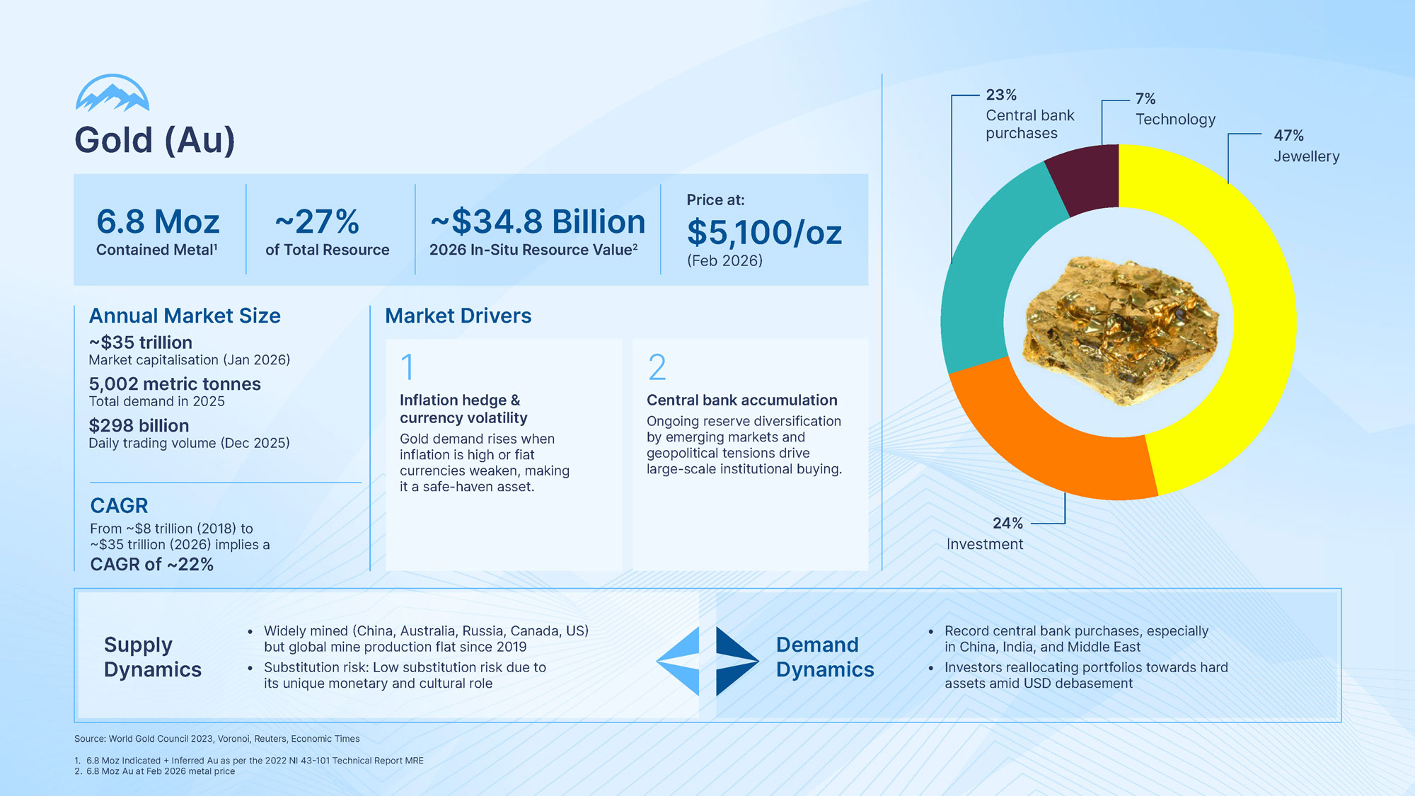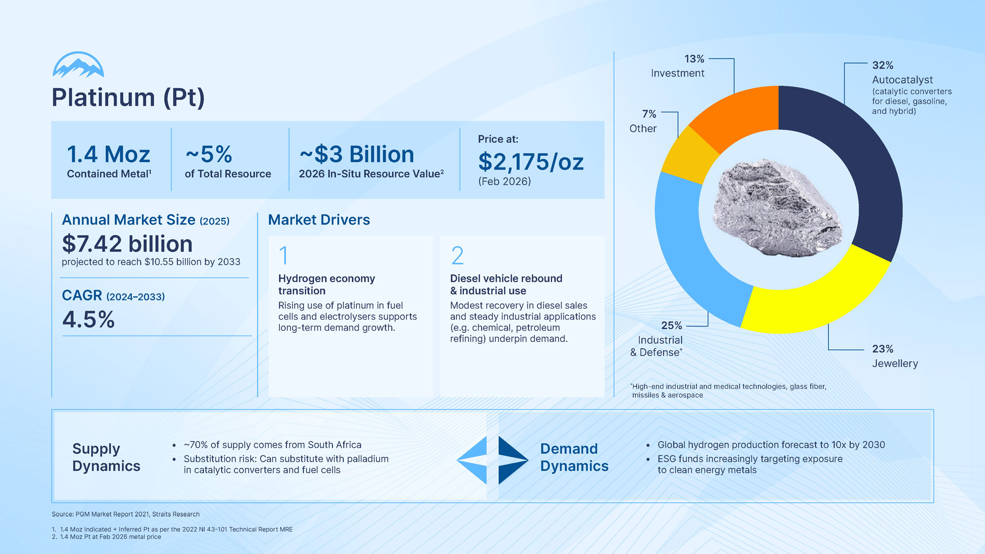 1. 2022 NI 43-101 Technical Report Mineral Resource Estimate (MRE) cumulative contained ounces of Au, Pd, and Pt at February 2026 metal prices